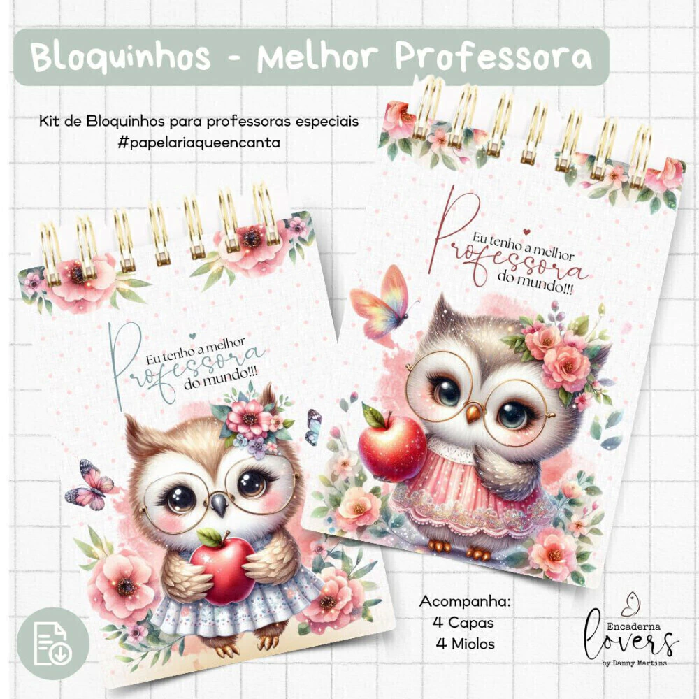 Este produto digital inclui arquivos completos conforme ilustrado na foto de referência. Você receberá capas em PNG, disponíveis com e sem escrita, para personalizar do seu jeito e criar um bloquinho exclusivo para a melhor professora. Além disso, os miolos em PDF estão prontos para impressão, facilitando a montagem do seu material com qualidade profissional.