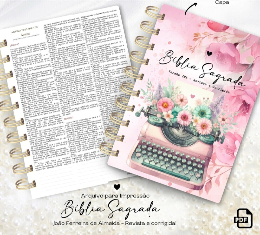 AD. Bíblia para Imprimir - Encaderna Note Produto digital completo para você imprimir e montar sua própria Bíblia personalizada com a Versão Almeida Revista e Corrigida (ARC).